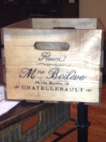 Ok I am officially addicted to the graphics fairy! I have been painting crates! So easy! You need to go to www.graphicsfairy.blogspot.com and find some art you really like! I purchased the crates at Micheals for 14.00. Use a forty percent off coupon on your phone and get one even cheaper. I stained the box. It looks so much better! Then use a charcoal pencil on the back side of the artwork you chose. Then tape it to your box. Use the sharpie permanent marker to trace the artwork. You have to really bear down! Then take the paint marker and paint what you traced! Tada! That's it! Now stack them up and use them for shelves, displays, towels, wine bottles, whatever. Have fun!